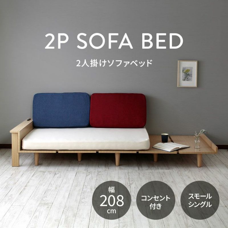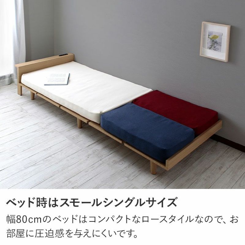 ソファ時は130cm幅の2人掛けソファとして、ベッド時は幅約80cmのスモールシングルのベッドとして使用できます。