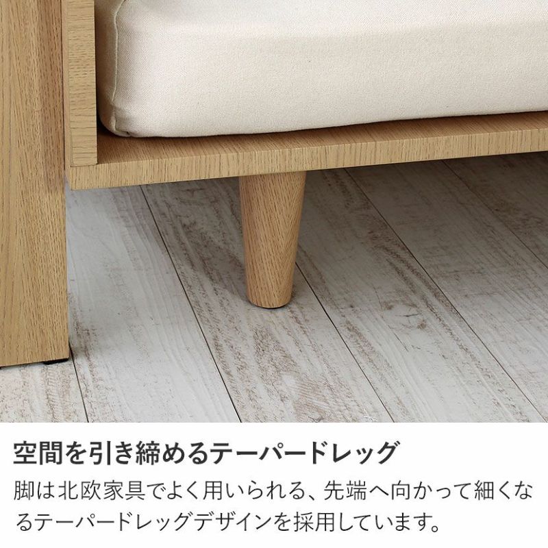 脚は北欧家具でよく用いられる、先端へ向かって細くなるテーパードレッグデザインを採用しています。