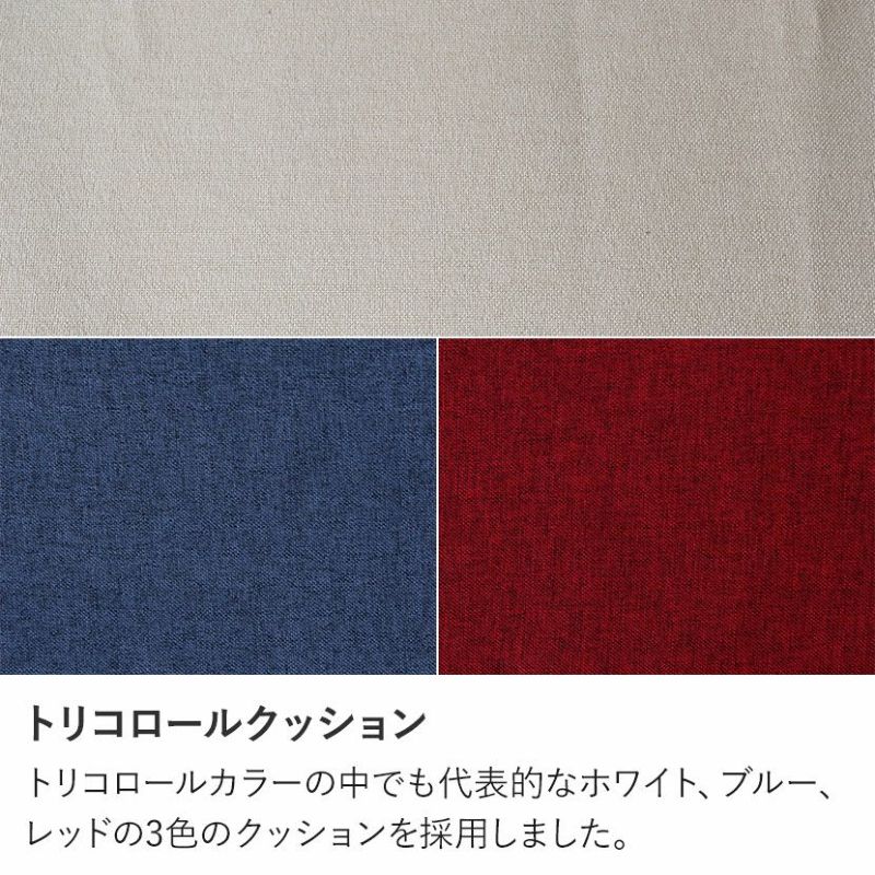 トリコロールカラーの中でも代表的なホワイト、ブルー、レッドの3色のクッションを採用しました。