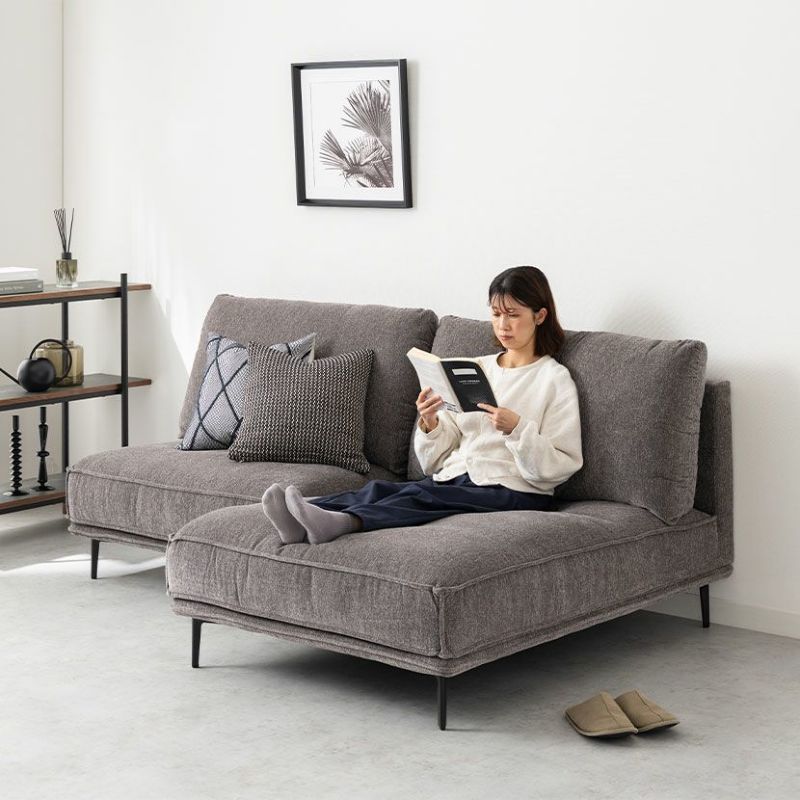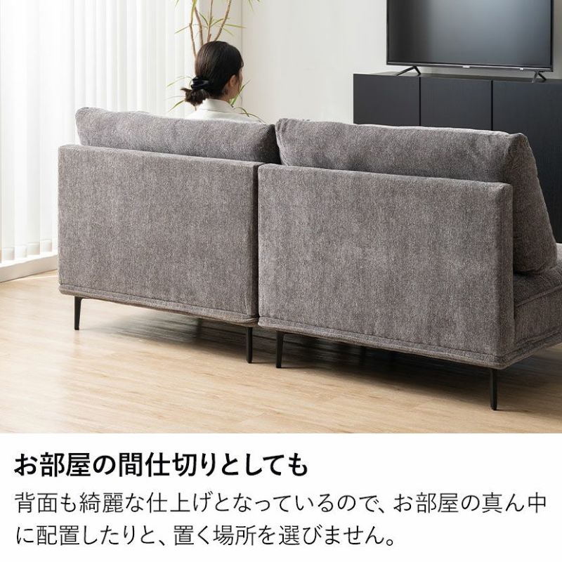 幅200cm 3人掛け カウチソファ アームレス L字 ソファー 肘なし あぐらソファ 大きい 大型 広い 座面 組み合わせソファ アイアン脚 ファブリック シンプル モダン リビングソファ おしゃれ グレー ルンバブル