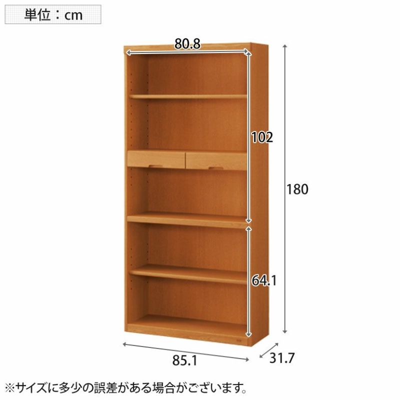 【設置無料】浜本工芸 幅85.1cm 高さ180cm No.8600 書棚A 本棚 収納 ラック オープンラック 移動引き出 耐震金具付属 日本製