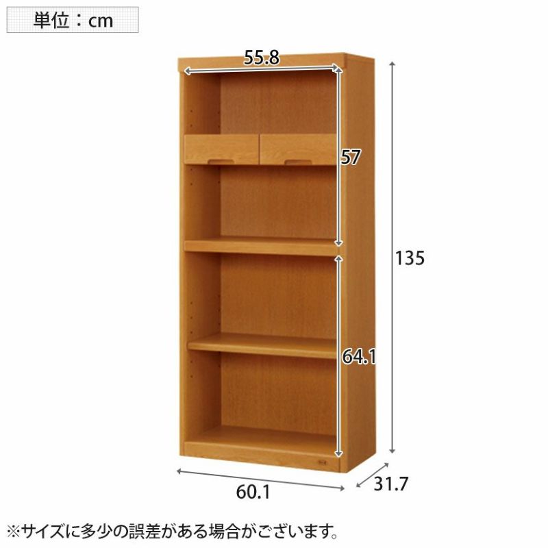 【設置無料】浜本工芸 幅60.1cm 高さ135cm No.8600 書棚B 本棚 収納 ラック オープンラック 移動引き出 日本製