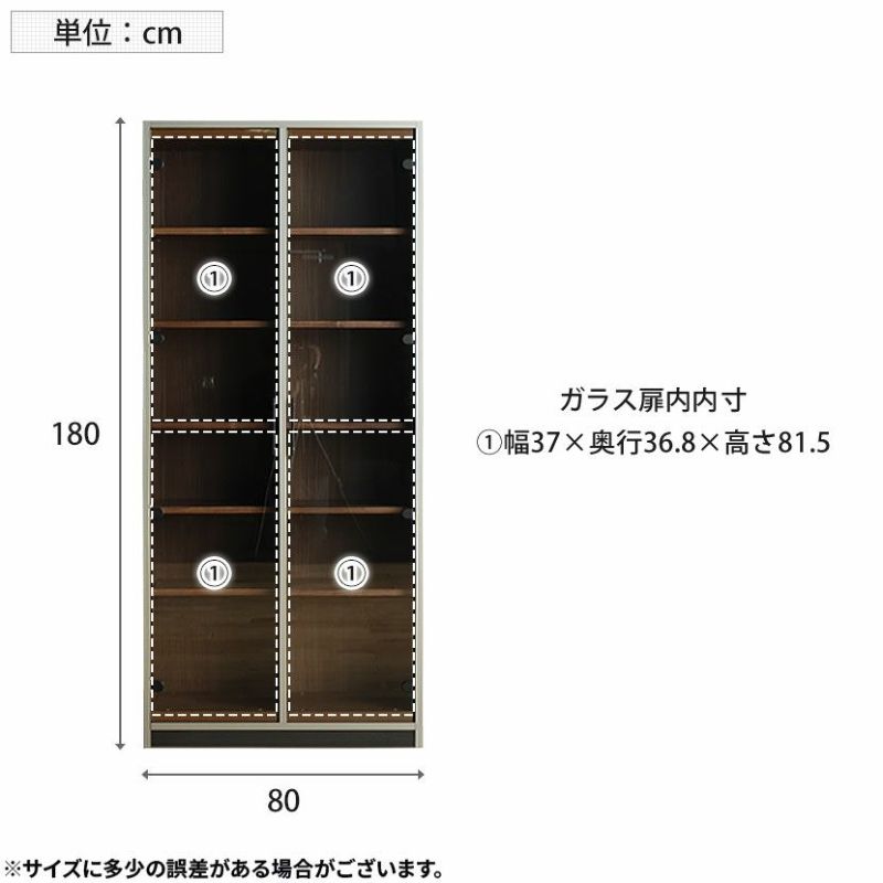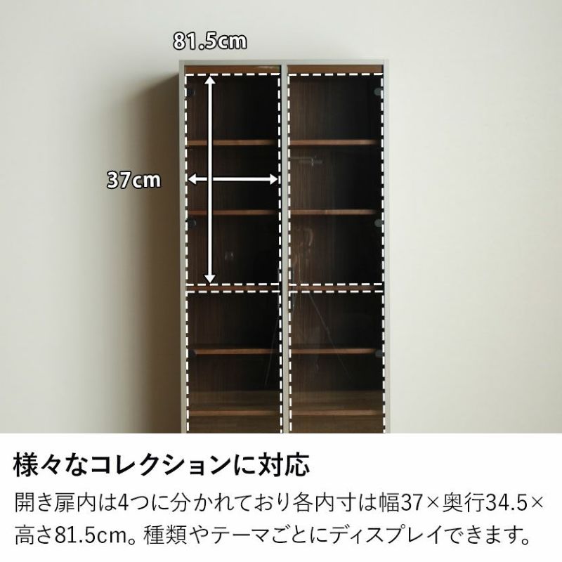 開き扉内は4つに分かれており各内寸は幅37×奥行34.5×高さ81.5cm。種類やテーマごとにディスプレイできます。