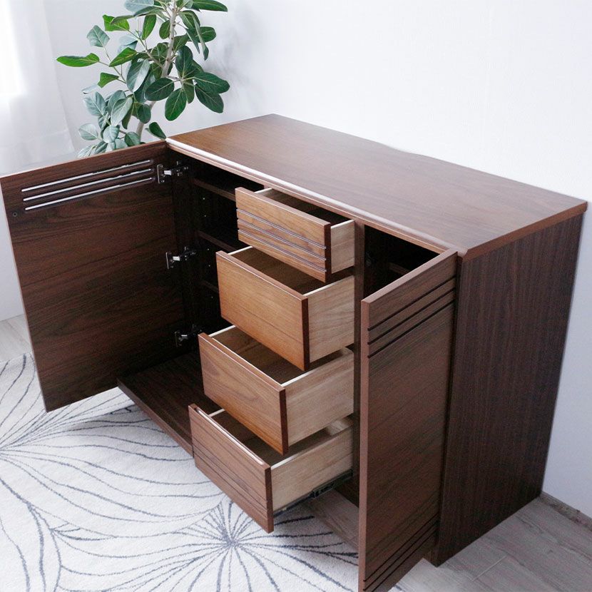 他の画像を見る 【設置無料】幅90cm 木製 サイドボード ウォールナット 引出し付き 可動棚 天然木 TVボード コンパクト キャビネット リビングボード 収納家具 テレビ台 おしゃれ リビング 送料無料 送料無料 開梱設置付き 開梱設置付き ¥ 59,900 税込 カートに入れる