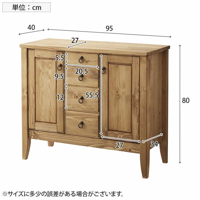 他の画像を見る 幅95cm 木製 サイドボード 天然木 無垢材 パイン材 引出し付き 扉付き 可動棚 収納 キャビネット リビングボード おしゃれ 北欧風 ナチュラル カントリー 完成品 送料無料 送料無料 完成品 完成品 ¥ 79,900 税込 カートに入れる
