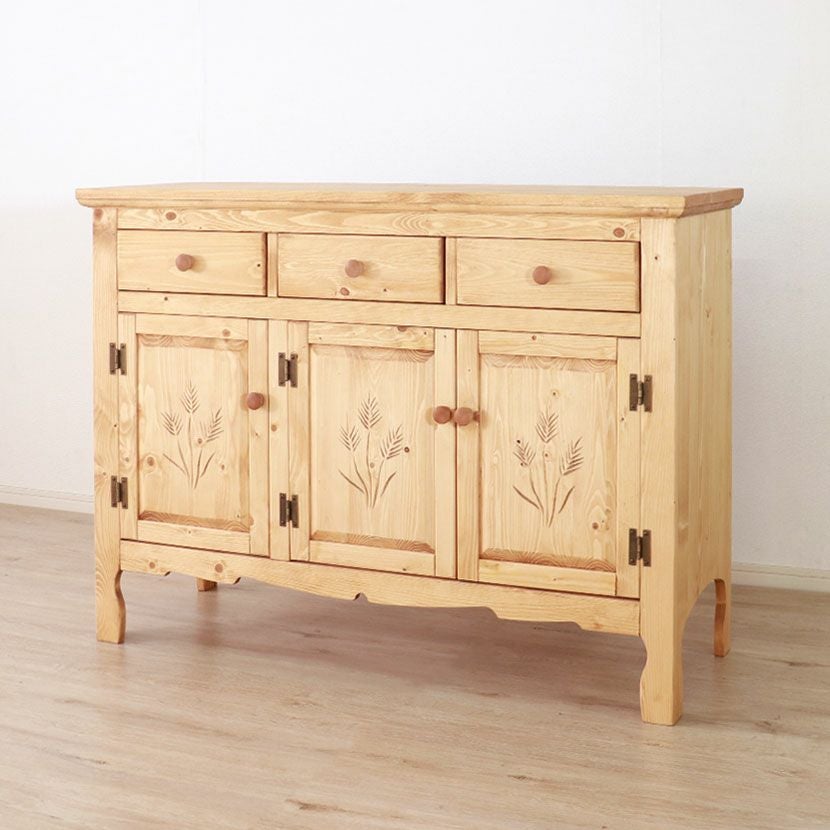 他の画像を見る 【設置無料】幅120cm カントリーキャビネット サイドボード 引き出し付き 収納 ナチュラル 北欧パイン材 天然木 ルンバブル 送料無料 送料無料 開梱設置付き 開梱設置付き ¥ 64,700 税込 カートに入れる