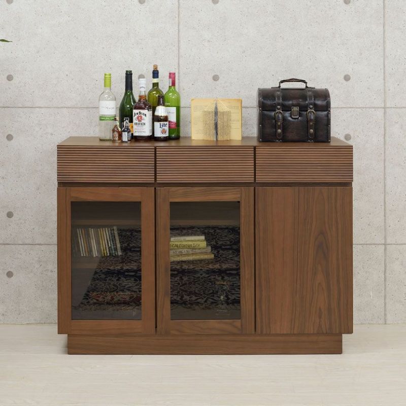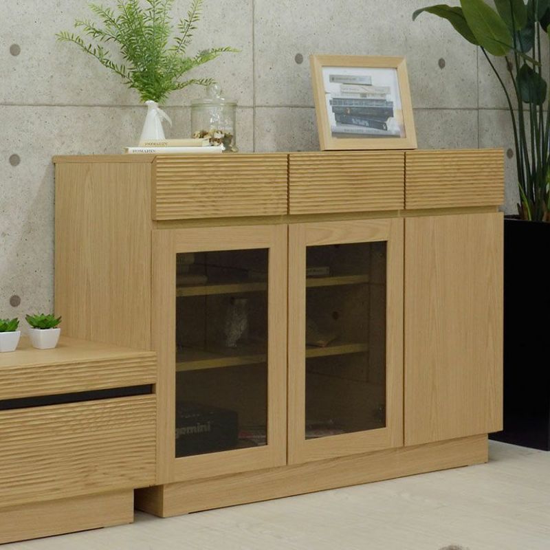 【設置無料】幅120cm 木製 サイドボード 格子デザイン ガラス扉 引出し付き リビングボード 収納 北欧風 シンプル ナチュラル ブラウン ルンバブル 送料無料 送料無料 組立設置付き 組立設置付き ¥ 59,900 税込