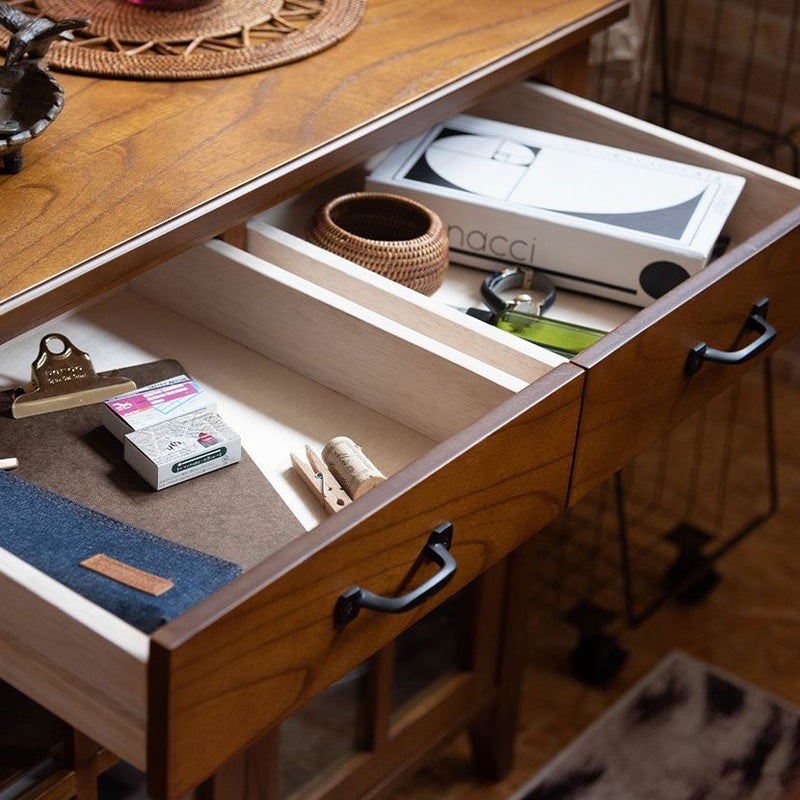 味わい深い天然木ならではの美しい木目や、ヴィンテージ感のある木の風合いがお部屋に高級感を与えます。高級感がありながらも、暮らしに馴染みやすいやさしいデザインが人気のシリーズ商品です。