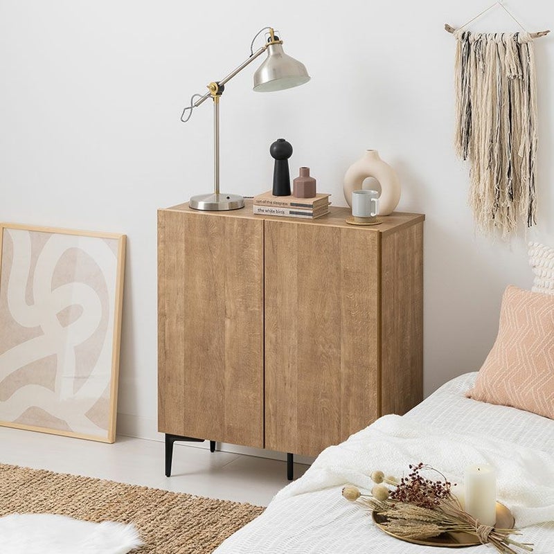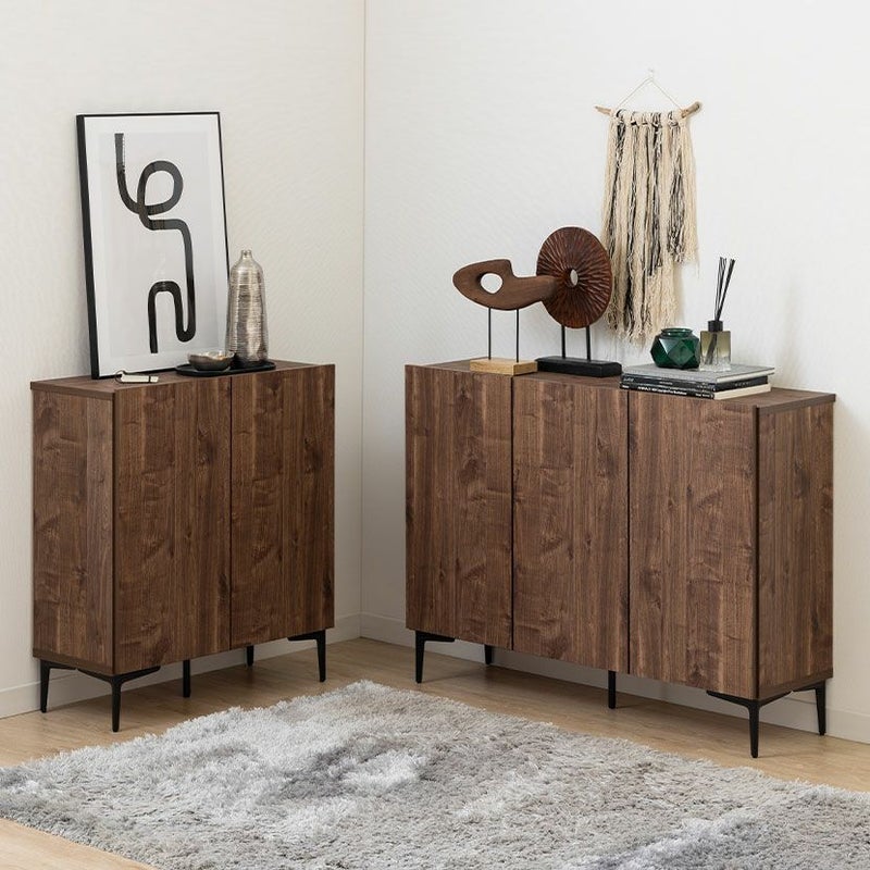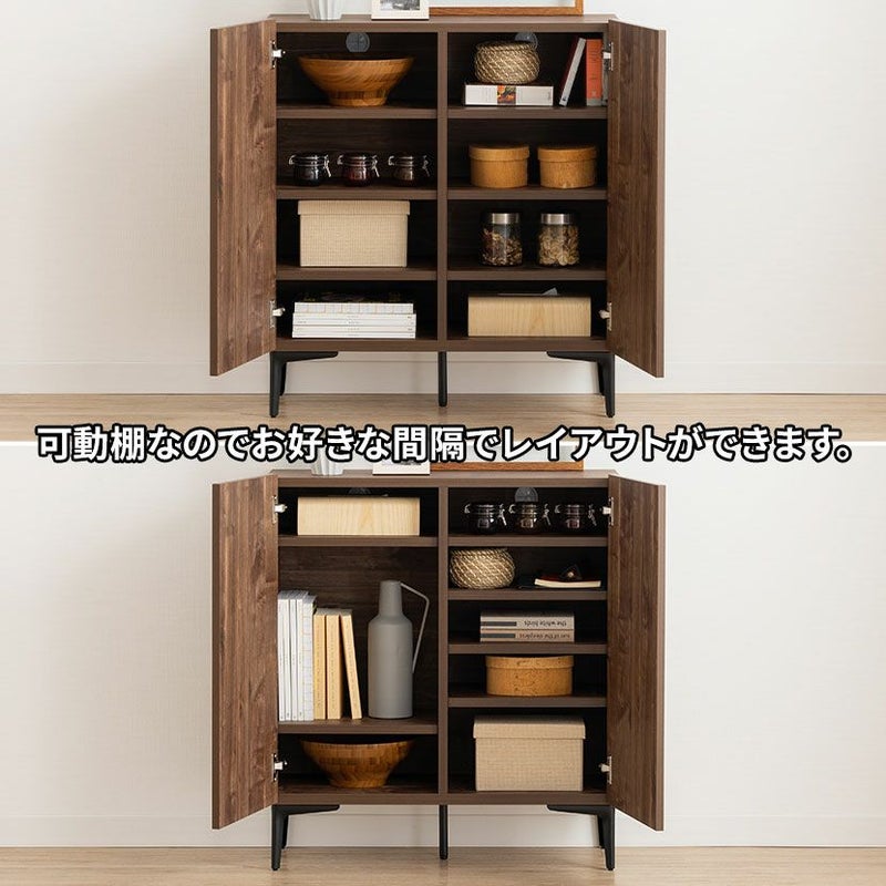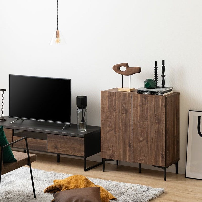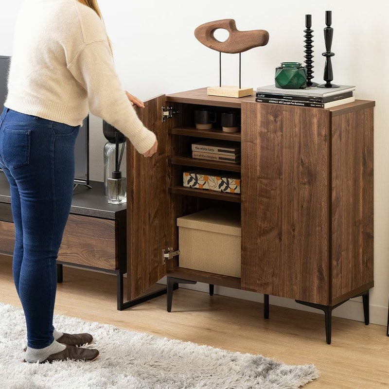 【設置無料】幅79.8cm 木製 サイドボード 日本製 黒スチール脚 コンパクト キャビネット 収納 リビングボード おしゃれ ヴィンテージ 北欧 モダン ナチュラル ウォールナット ルンバブル