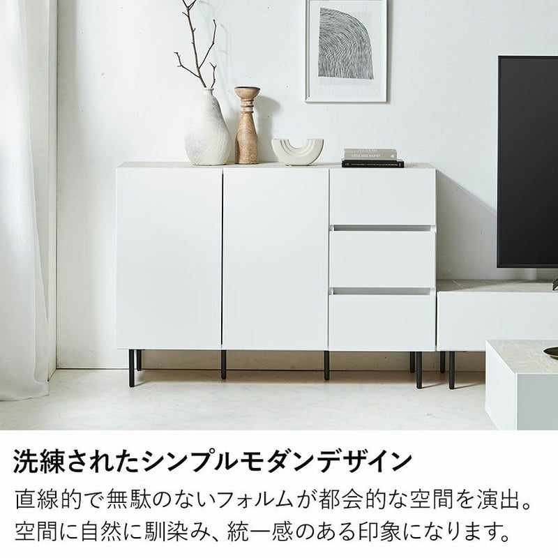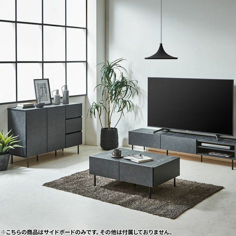 カトラリーや文房具、書類など、リビングで散らかりがちな小物の整理に便利な引き出し収納を3杯備えています。