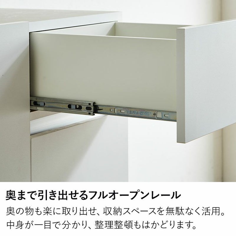 引き出しには、奥にしまった物までスムーズに取り出せるフルオープンレールを採用しています。