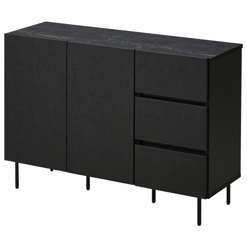 足元にはマットな質感のブラックスチール脚を合わせ、全体を洗練された印象に引き締めています。