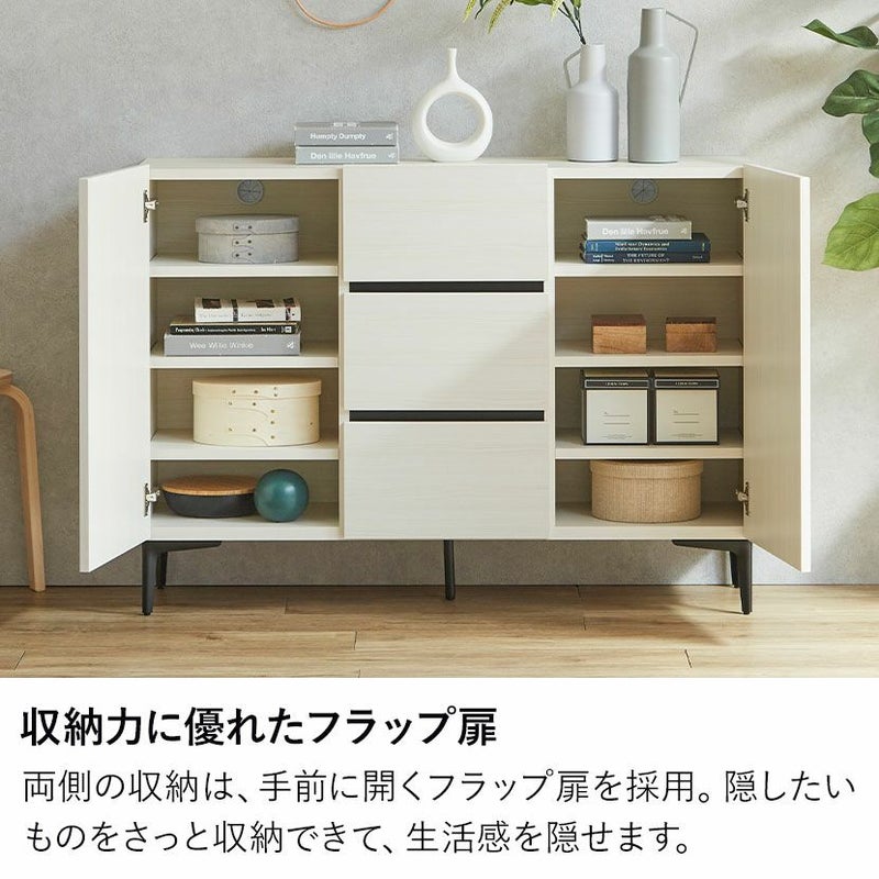 向かって右側の収納部には、手前に開くフラップ式の扉を採用しています。