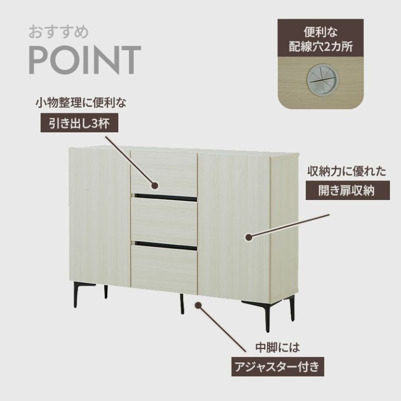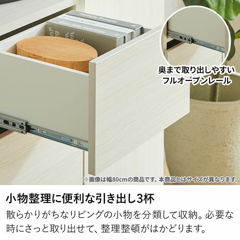 リビング周りの小物整理に役立つ引き出しを3杯備えています。