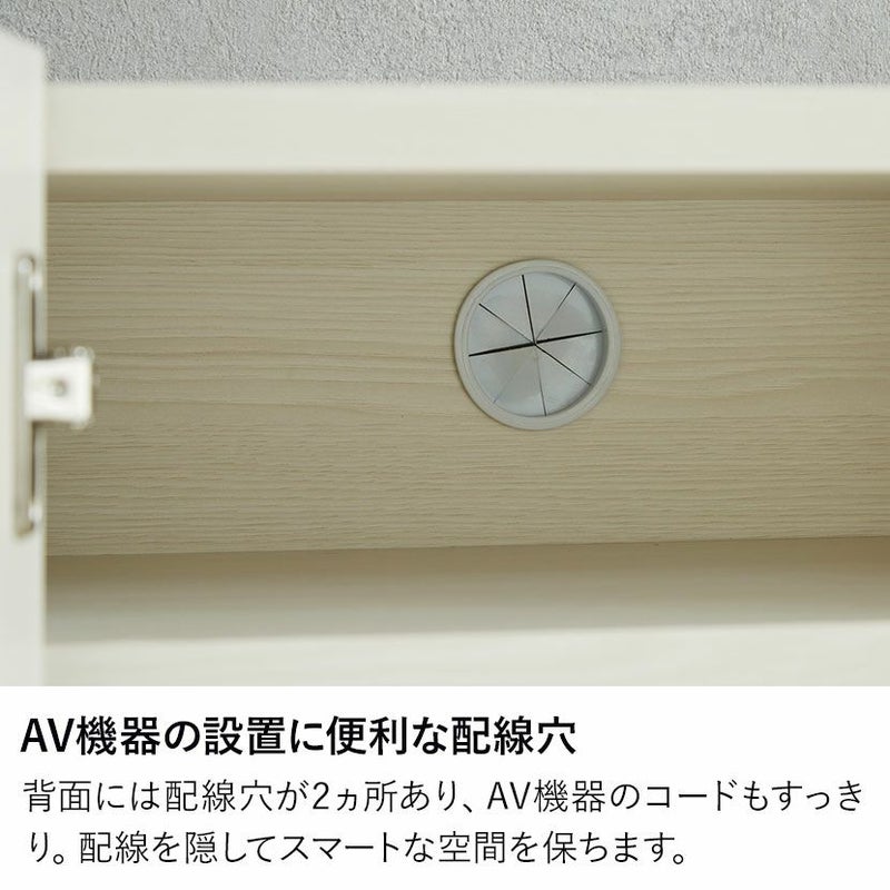 収納部の背面には、AV機器などの設置に便利な配線穴を設けています。