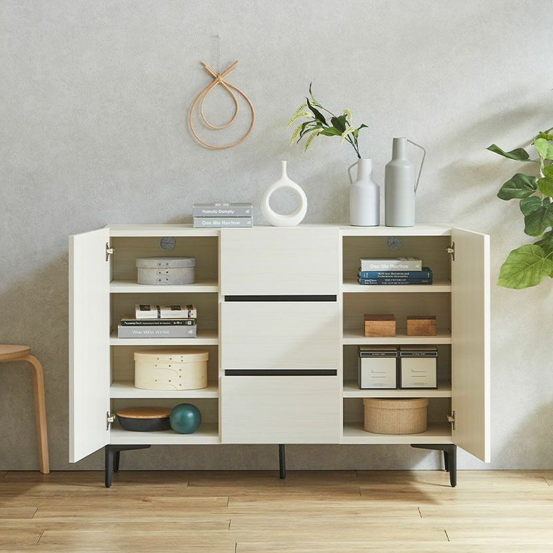 開き扉内には、6枚の棚板が付属しており、しまう物に合わせて高さ調節が可能です。