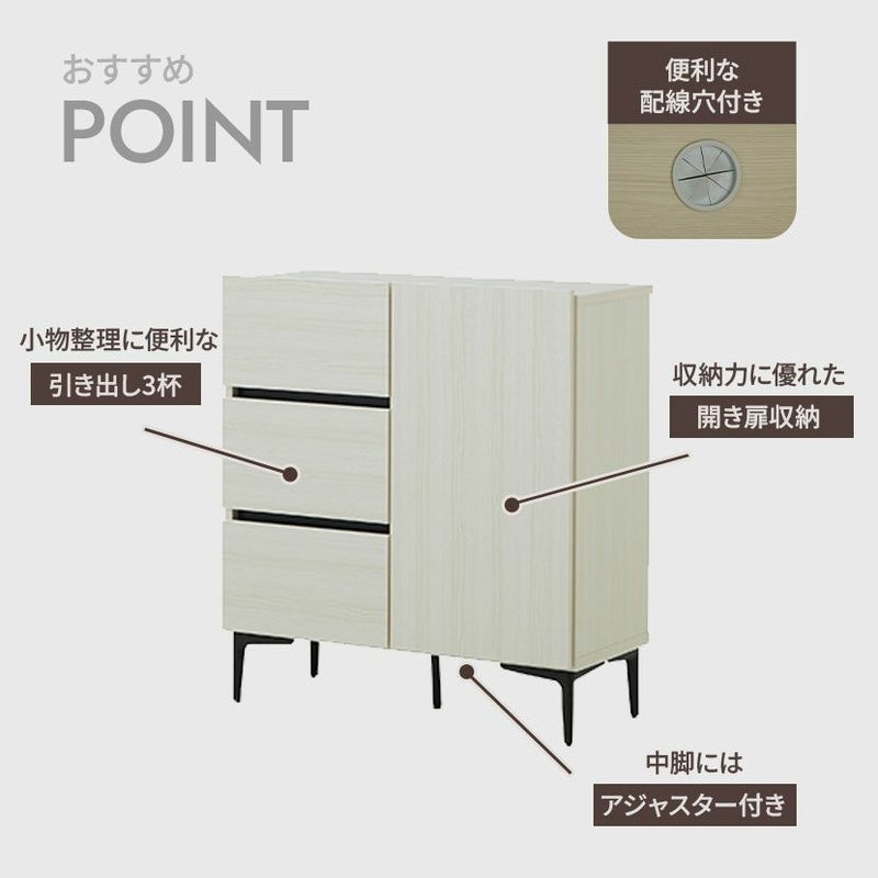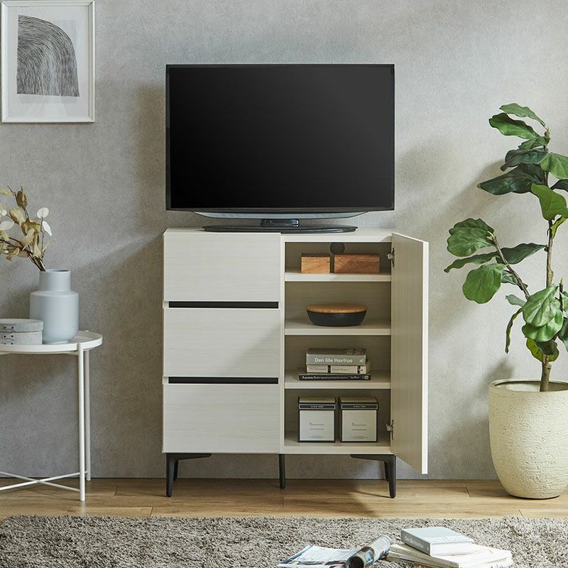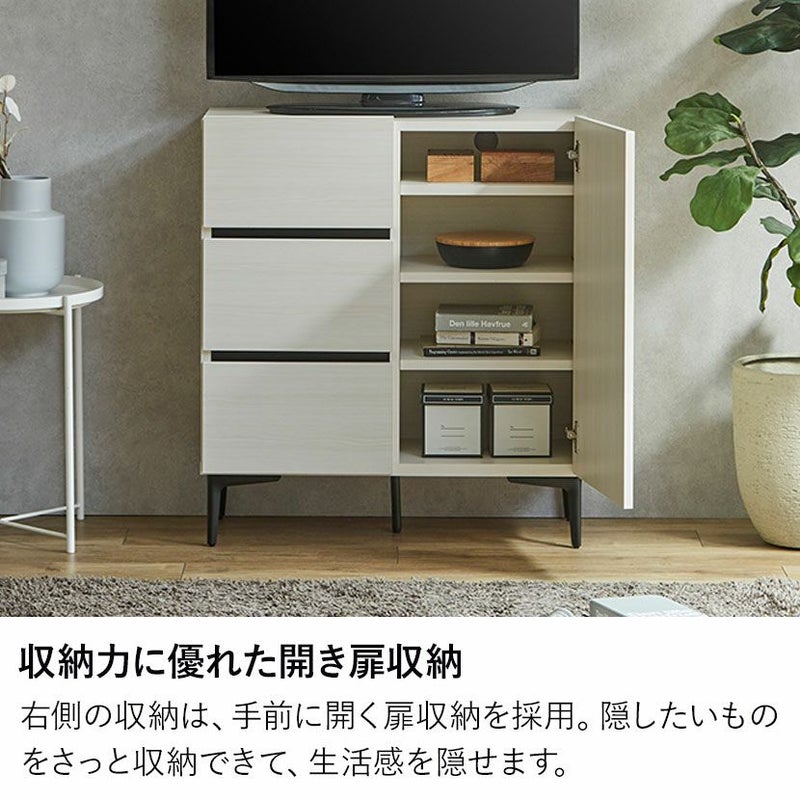 配線穴と切り欠きを備えた配線に便利な作りなので、ハイタイプのテレビ台としてもお使いいただけます。
