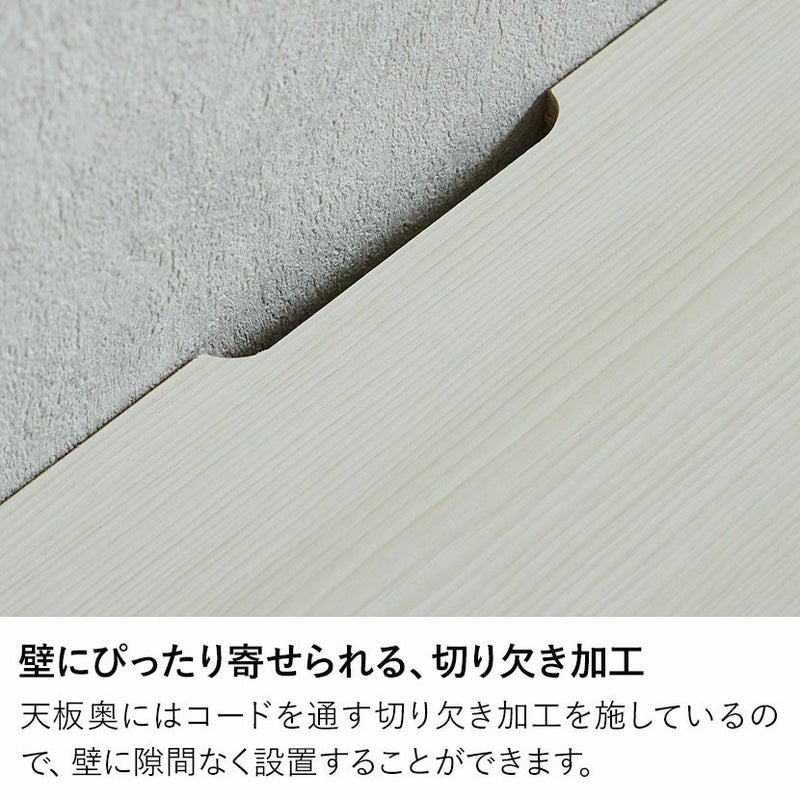 天板奥にはコードを通す切り欠き加工を施しているので、壁に隙間なく設置することができます。
