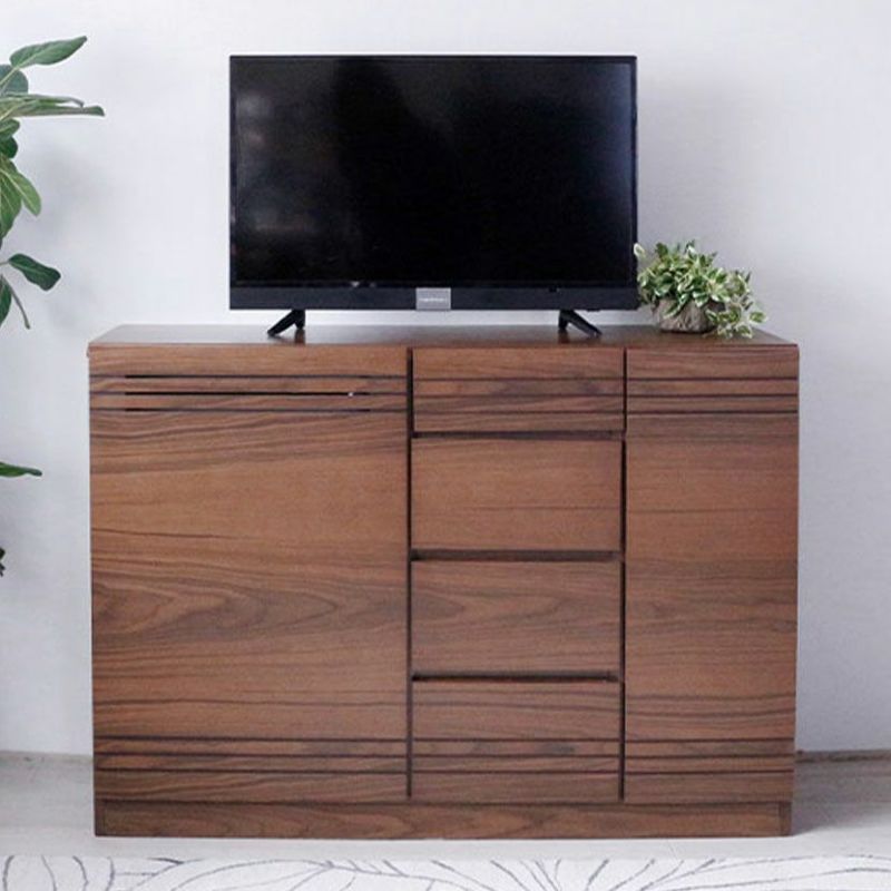 扉の上部に赤外線を通す穴が空いているので、リモコン操作が必要なデッキなどの収納も可能です。