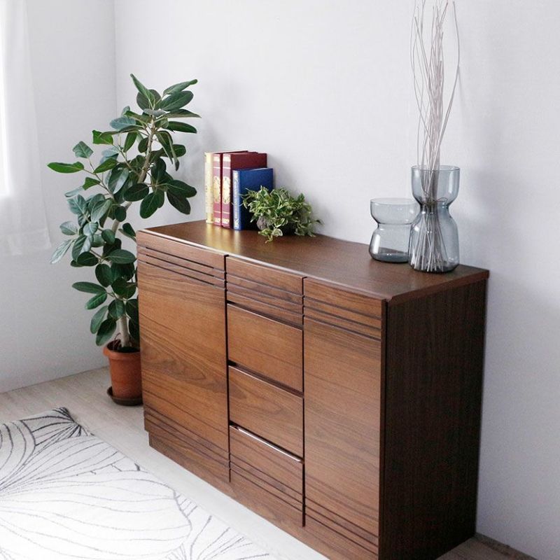 手前に引き出せるスライド棚が最下段に付いているので、プリンターなどの収納に便利です。