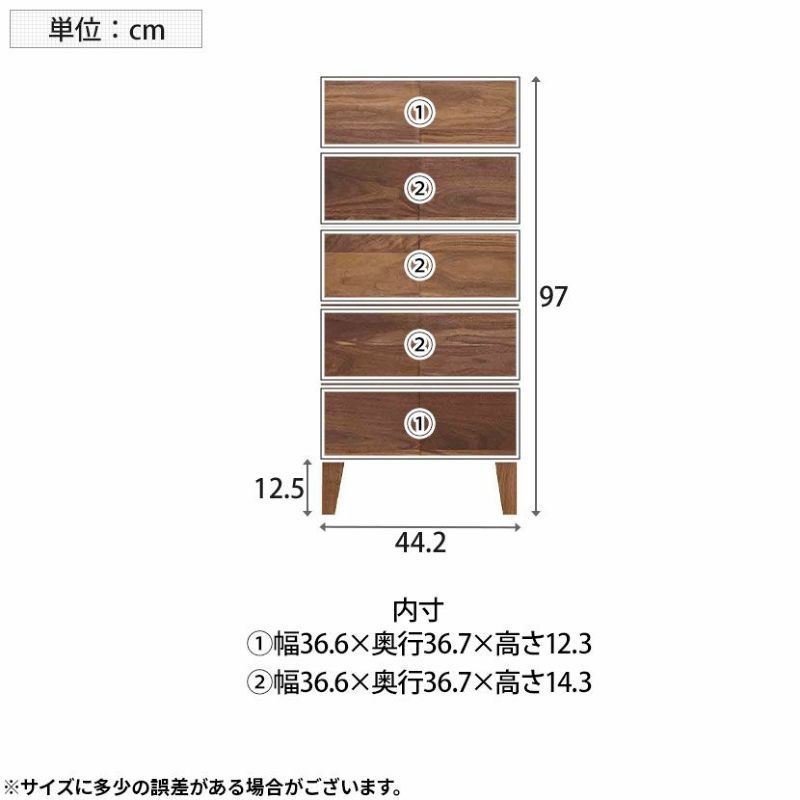 【設置無料】幅44.2cm 5段チェスト ウォールナット 無垢材 桐材 洋服収納 おしゃれ 衣類収納 整理タンス 収納 シンプル 国産 日本製 ルンバブル