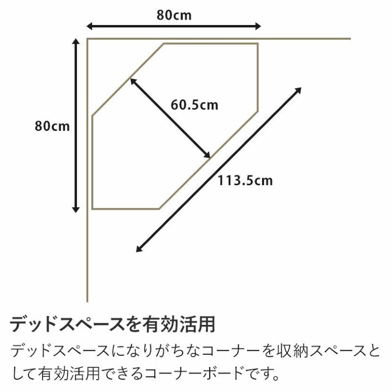 デッドスペースになりがちなコーナーを収納スペースとして有効活用できるコーナーボードです。
