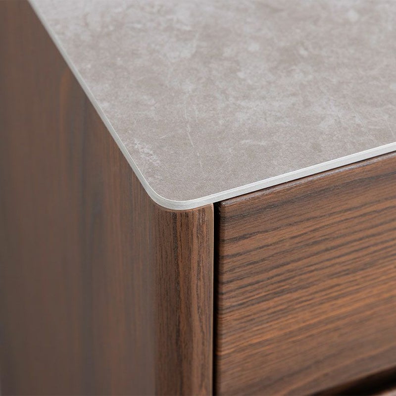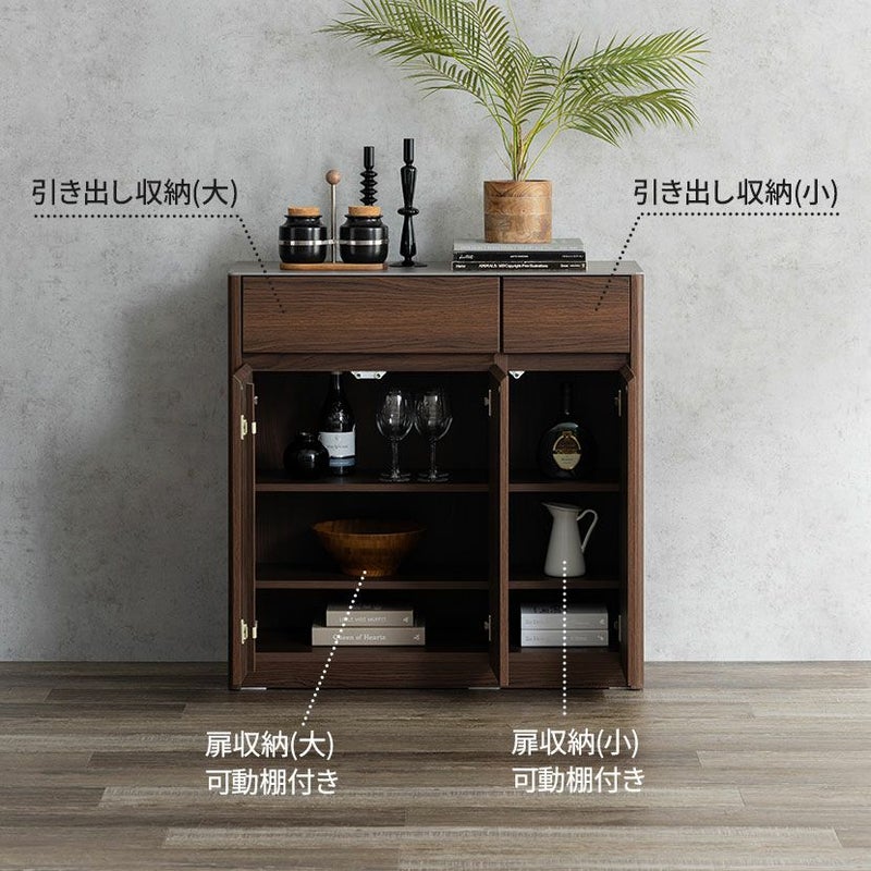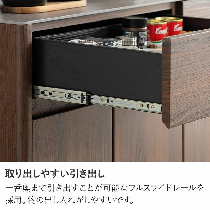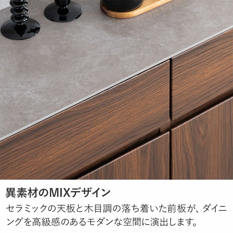 セラミックの天板と木目調の落ち着いた前板が、ダイニングを高級感のあるモダンな空間に演出します。