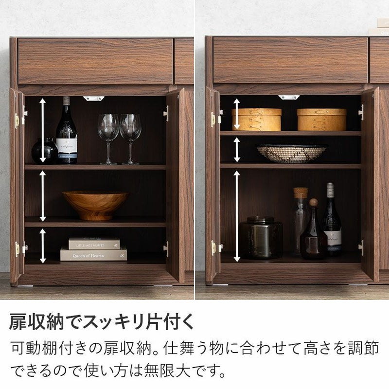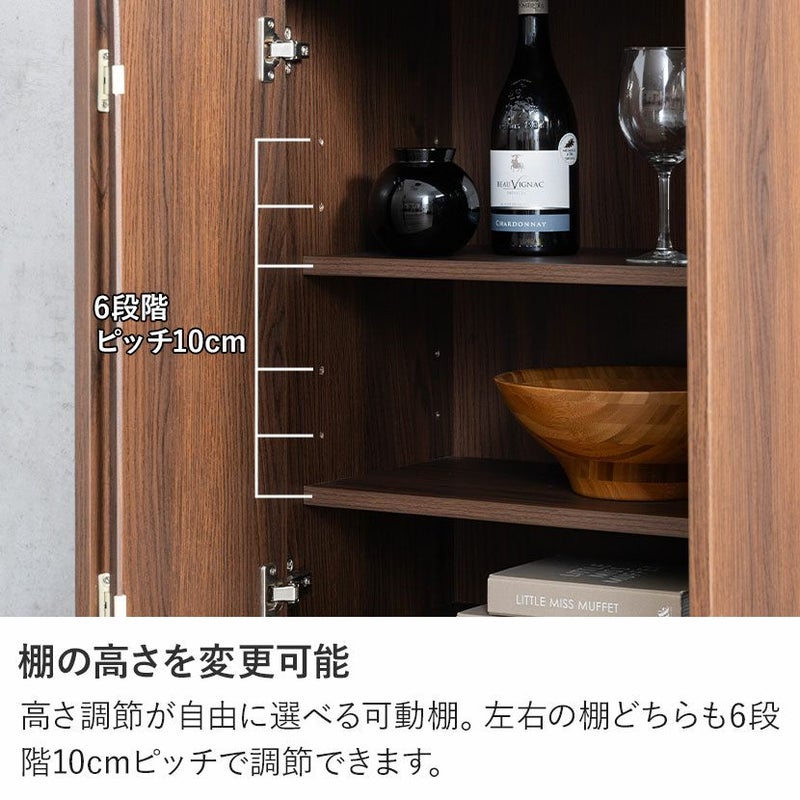 高さ調節が自由に選べる可動棚。左右の棚どちらも6段階10cmピッチで調節できます。