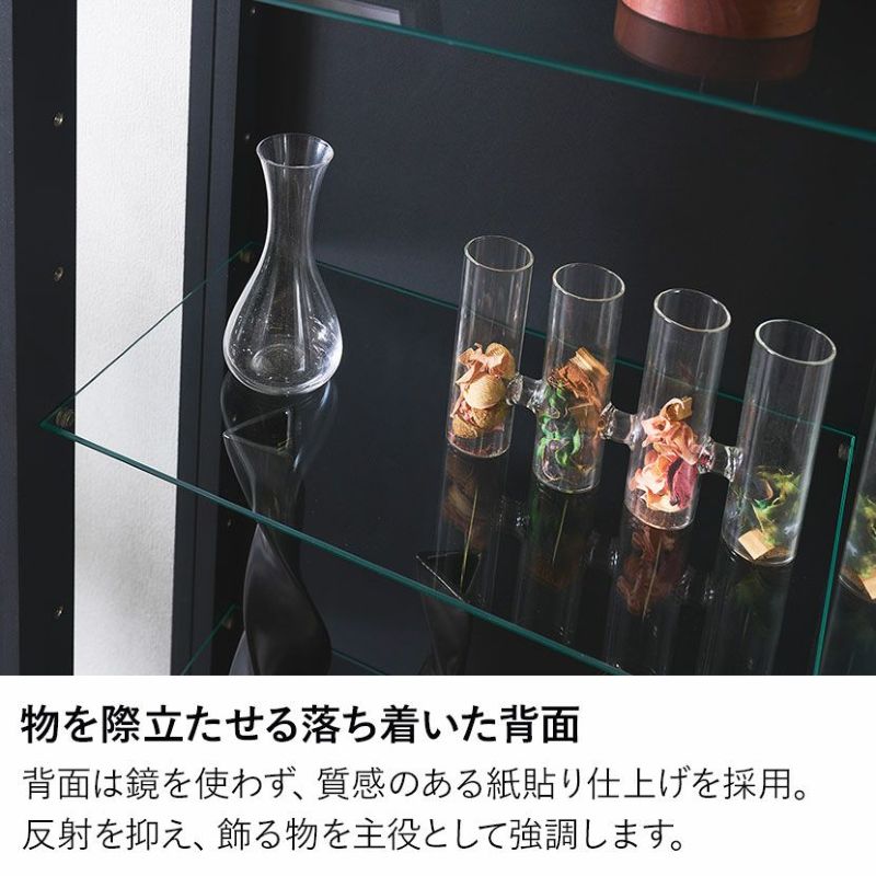 正面に枠の継ぎ目(隙間)がない1枚ガラスの扉を採用しており、視界を遮ることなくコレクションを鑑賞できます。