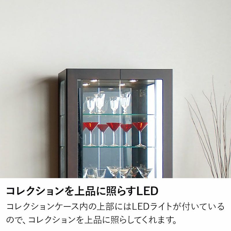 コレクションケース内の上部にはLEDライトが付いているので、コレクションを上品に照らしてくれます。