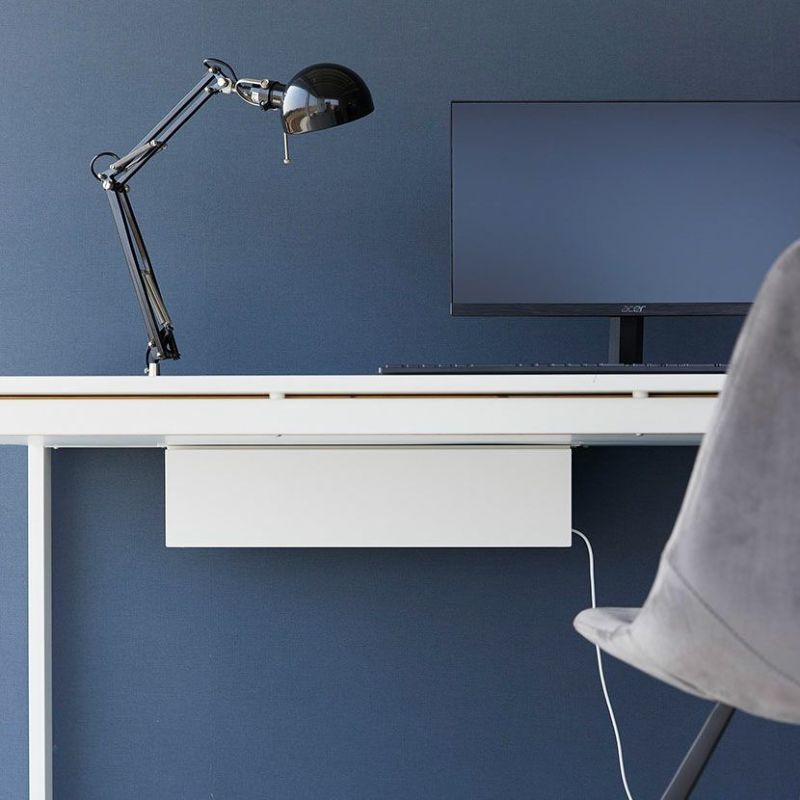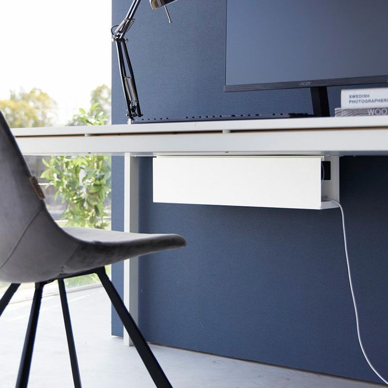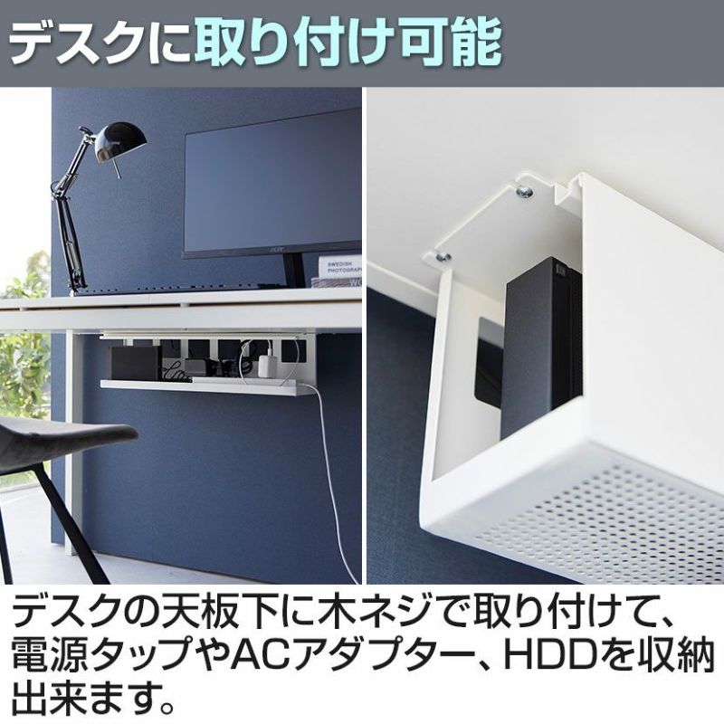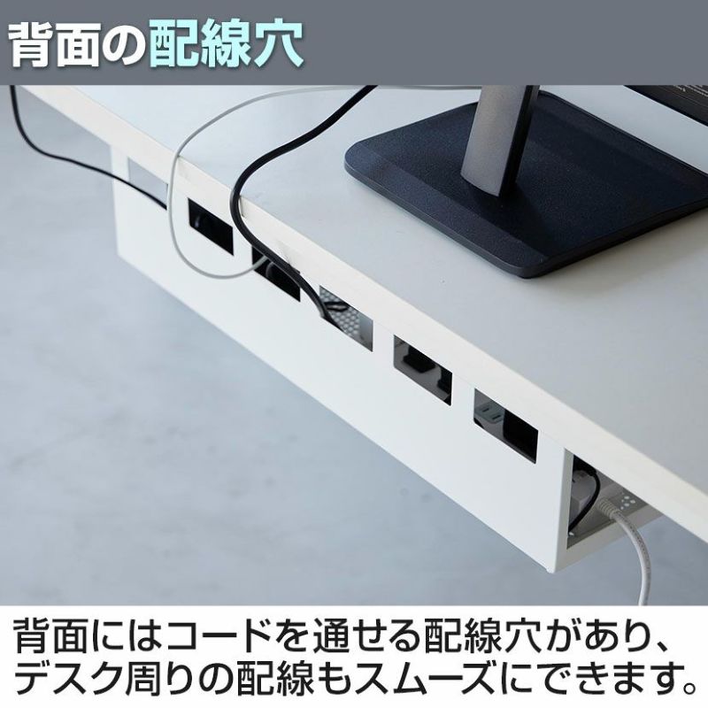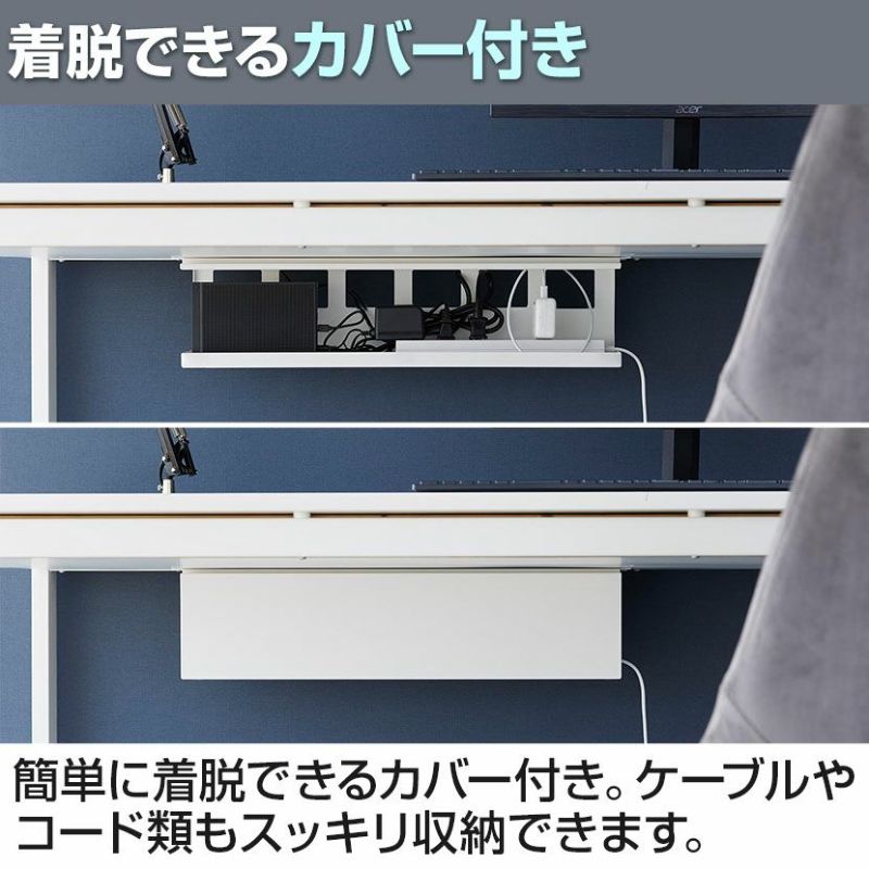 ・デスクの天板に取り付け浮かせて収納可能。デスク下にまとめられるので、デスク上は広々と使用できます。