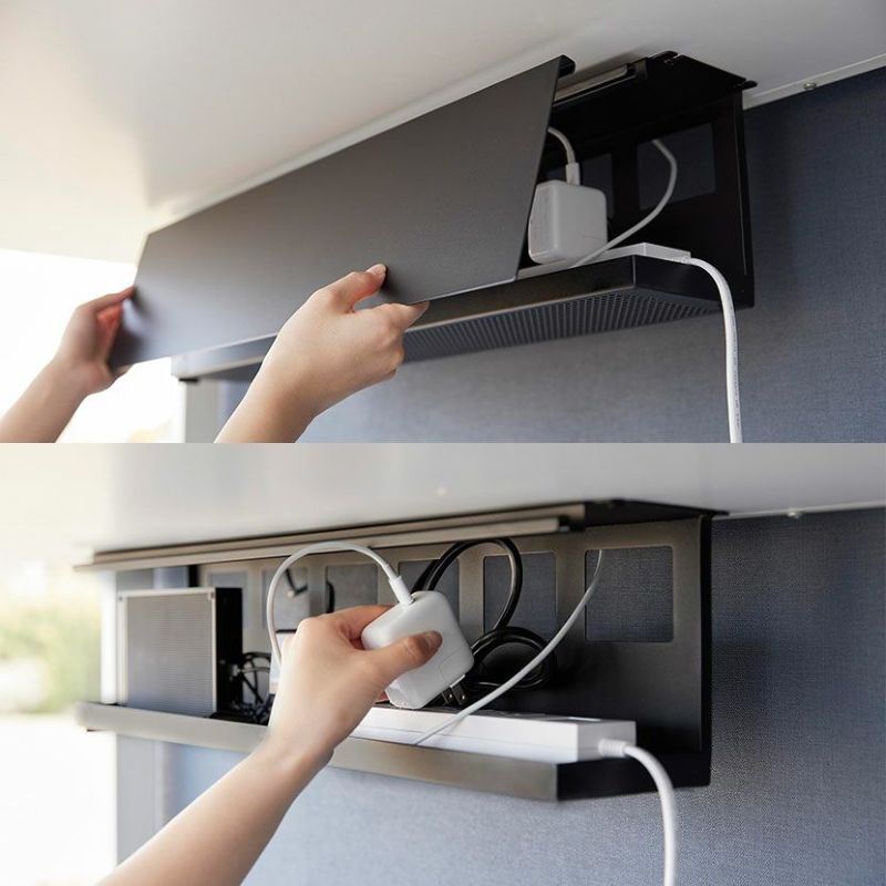 ・正面には、ケーブルを隠せる蓋がつけられるので配線が見えず家具の一部のような見た目に。
