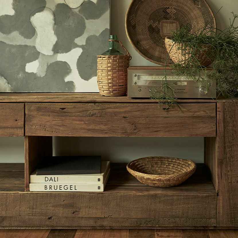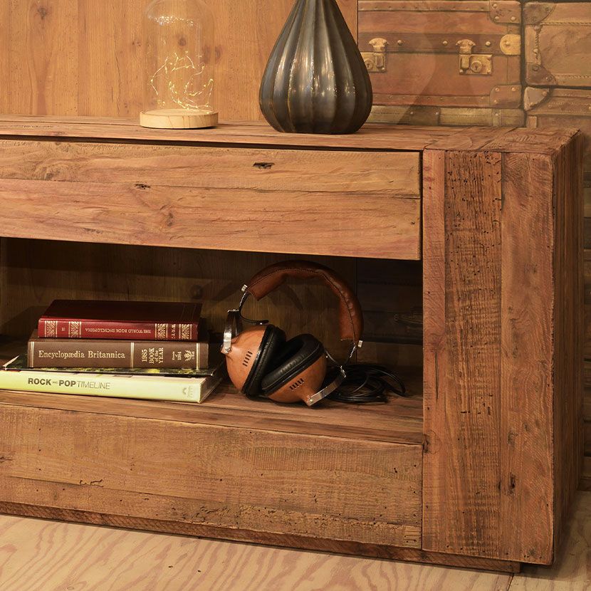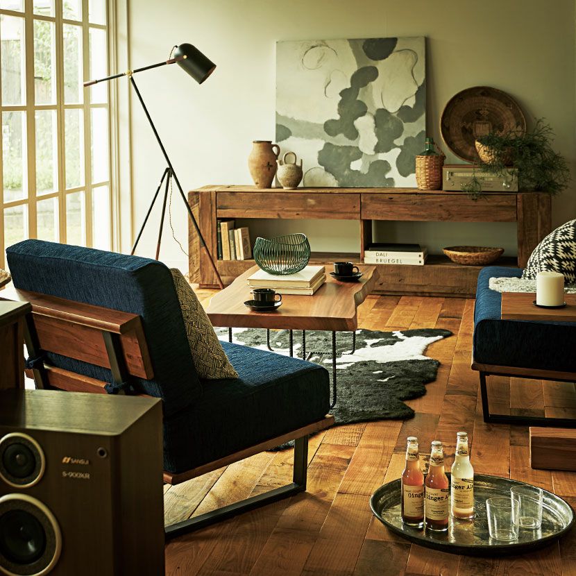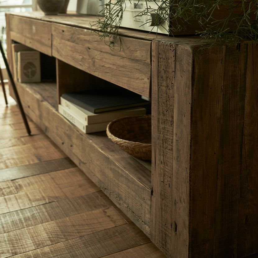 味わい深い天然木ならではの美しい木目や、ヴィンテージ感のある木の風合いがお部屋に高級感を与えます。高級感がありながらも、暮らしに馴染みやすいやさしいデザインが人気のシリーズ商品です。