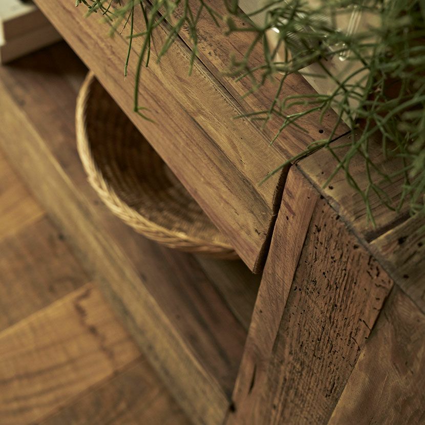 古材特有のキズなども、同じものが1つとしてない素材の風合いとしてお楽しみください。
