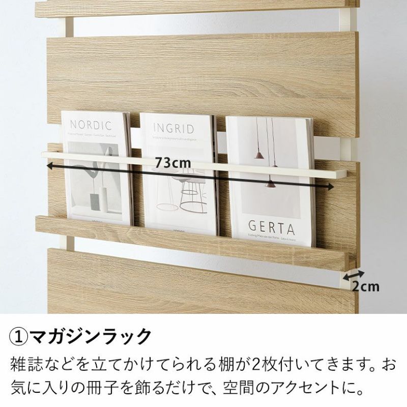 雑誌などを立てかけてられる棚が2枚付いてきます。お気に入りの冊子を飾るだけで、空間のアクセントに。