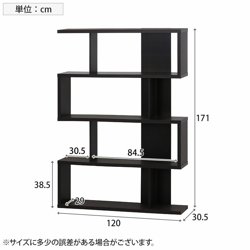 他の画像を見る 幅120cm S型ディスプレイシェルフ ディスプレイラック 4段 収納 パーテーション 間仕切り マルチラック 飾り棚 シェルフ 木目調 書斎 リビング クーポン対象 クーポン対象 送料無料 送料無料 ¥ 17,310 税込 カートに入れる