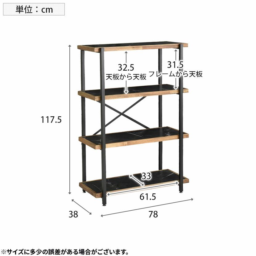 他の画像を見る 幅78cm オープンラック 4段 収納 棚 メラミン スチール脚 本棚 シェルフ リビング収納 ディスプレイラック おしゃれ ヴィンテージ風 送料無料 送料無料 ¥ 21,800 税込 カートに入れる