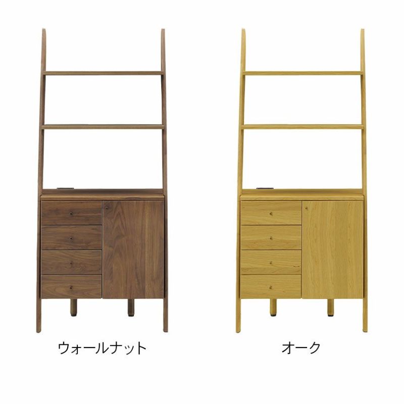 | 材質 | 木部(ウォールナット色) / ウォールナット材 木部(オーク色) / オーク材 天板・前板・戸板・左右ポール / 無垢材 上棚板 / 強化紙 塗装 / オイル仕上げ |