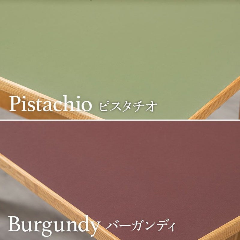天然素材のリノリウム天板リノリウムは柔らかでマットな質感。適度な弾力があり書き物にも最適です。リノリウムの魅力●天然の原材料