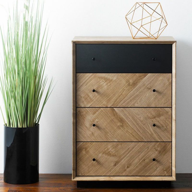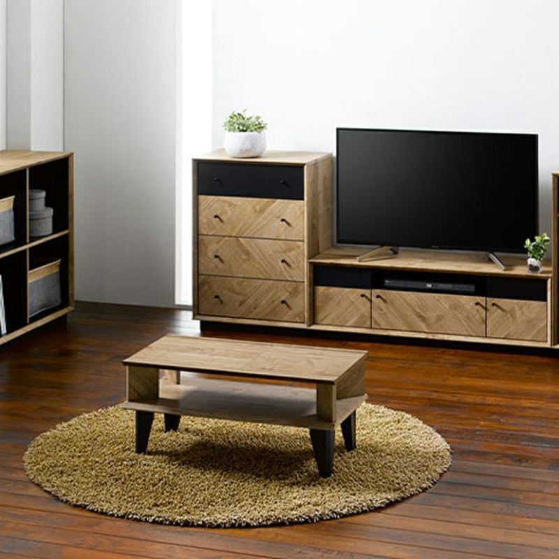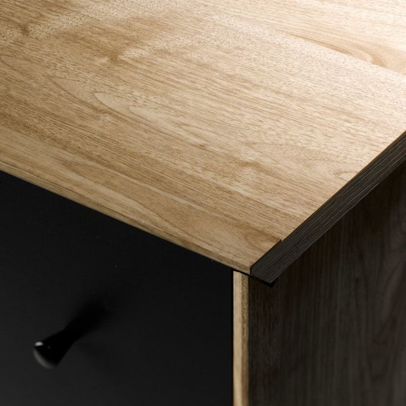 天然木のような風合いで、ナチュラルな暖かさを演出。取っ手はブラックで統一されており、丸いつまみのアンティーク調がワンポイントです。