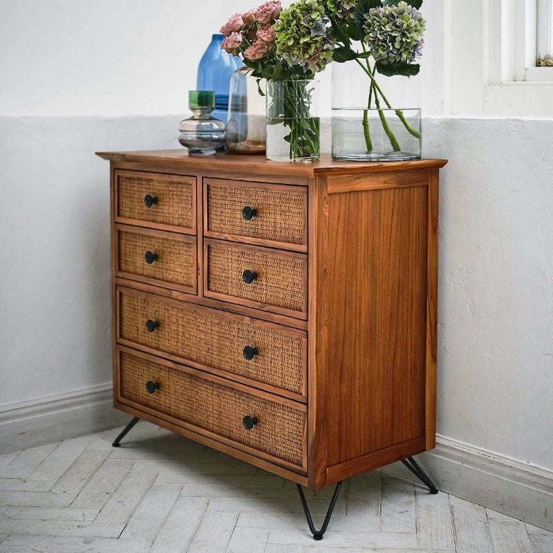 ラタン(籐)と天然木を使用した温かみのあるデザインが特徴。