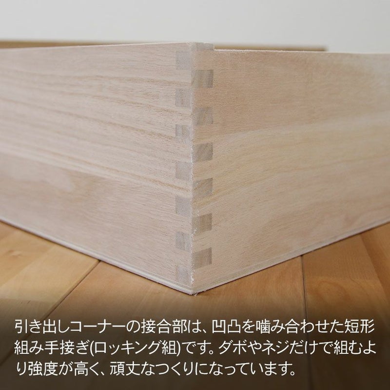 引き出しが入る棚の底板部分は、両面桐突板貼り(125mm厚)です。