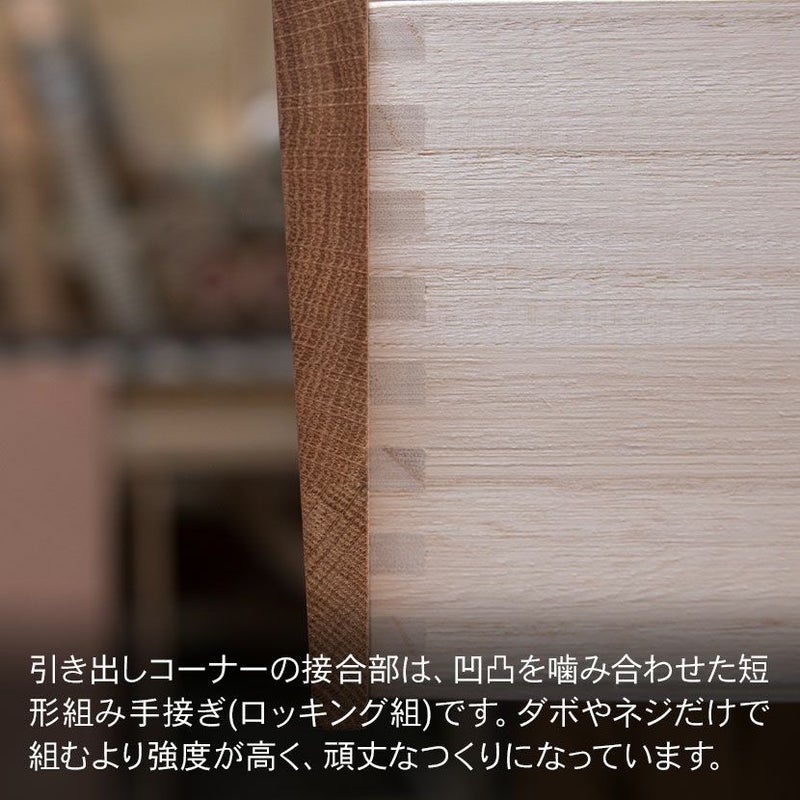 丸田木工株式会社は1958年に福岡県大川市にて設立された老舗家具メーカーになります。独自のデザイン、企画を行い、一貫した自社工場生産にて高品質な家具を生産しています。生涯を伴にする家具だからこそ、素材選びには徹底したこだわりを持っており、商品に使用している木材は樹木の上質な部分だけを厳選し、合板、パーティクルボードは「F☆☆☆☆」のものを使用していますので、人にやさしく仕上がり感や耐久性に格別な違いがあります。また素材だけでなく、高級婚礼家具製造で培ってきた、気密性の高い桐引き出しに強いこだわりを持っていおりう、熟練の職人の手によって丁寧に調整・仕上げがされているのが特徴です。国産家具だからこそできる細かい技術がたくさん詰まっている製品を提供しています。