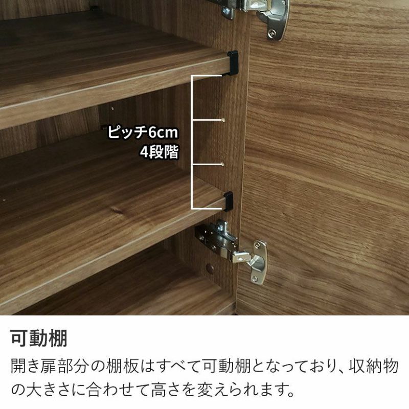 開き扉部分の棚板はすべて可動棚となっており、収納物の大きさに合わせて高さを変えられます。