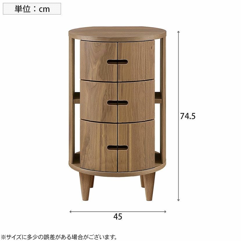 他の画像を見る 【設置無料】幅45cm 円柱 チェスト 3段 日本製 木製 天然木 ウォールナット アルダー 収納 引き出し リビング収納 脚付き サイドチェスト おしゃれ 北欧 リビング ブラウン 送料無料 送料無料 組立設置付き 組立設置付き 日本製 日本製 ¥ 61,710 税込 カートに入れる