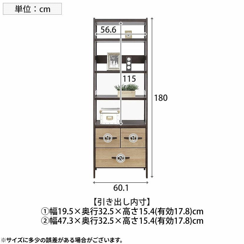 他の画像を見る 【設置無料】幅60.1cm シェルフ ハイタイプ 木目調 引き出し 棚 収納 ツートン キャビネット オープンラック 飾り棚 多目的収納 リビング おしゃれ リビング ナチュラル 和モダン 送料無料 送料無料 組立設置付き 組立設置付き ¥ 44,900 税込 カートに入れる