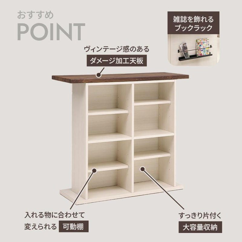 前面にはお気に入りの雑誌を収納できる幅65×奥行4.8cmのブックラックを備えました。