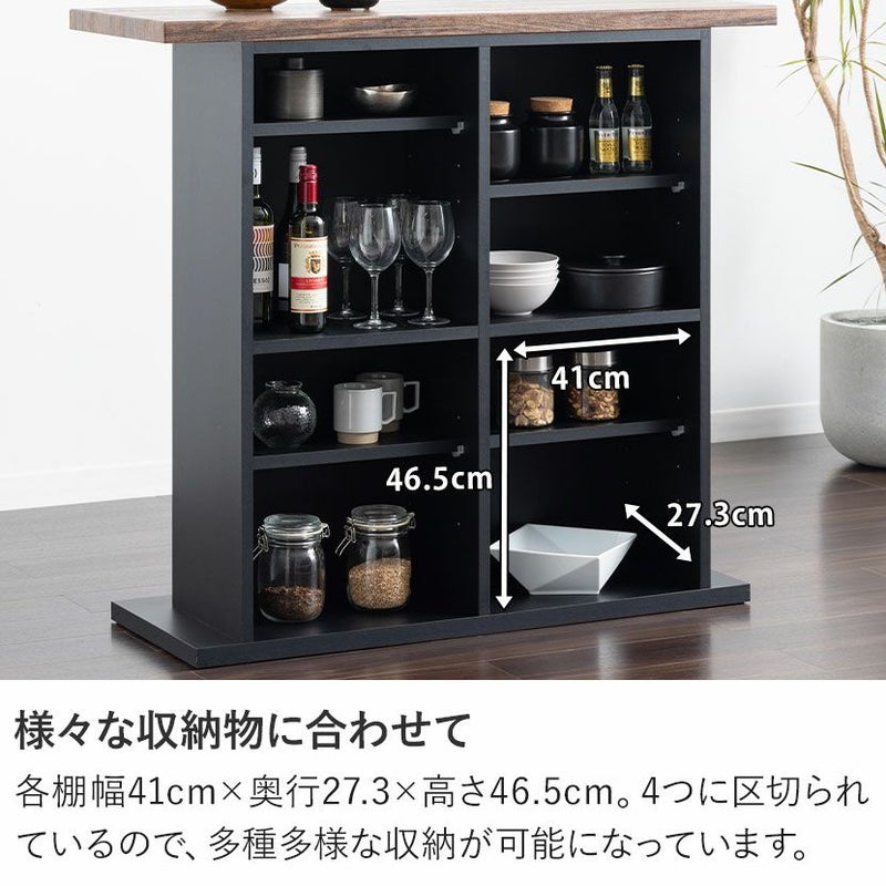 各棚幅41cm×奥行27.3×高さ46.5cm。4つに区切られているので、多種多様な収納が可能になっています。