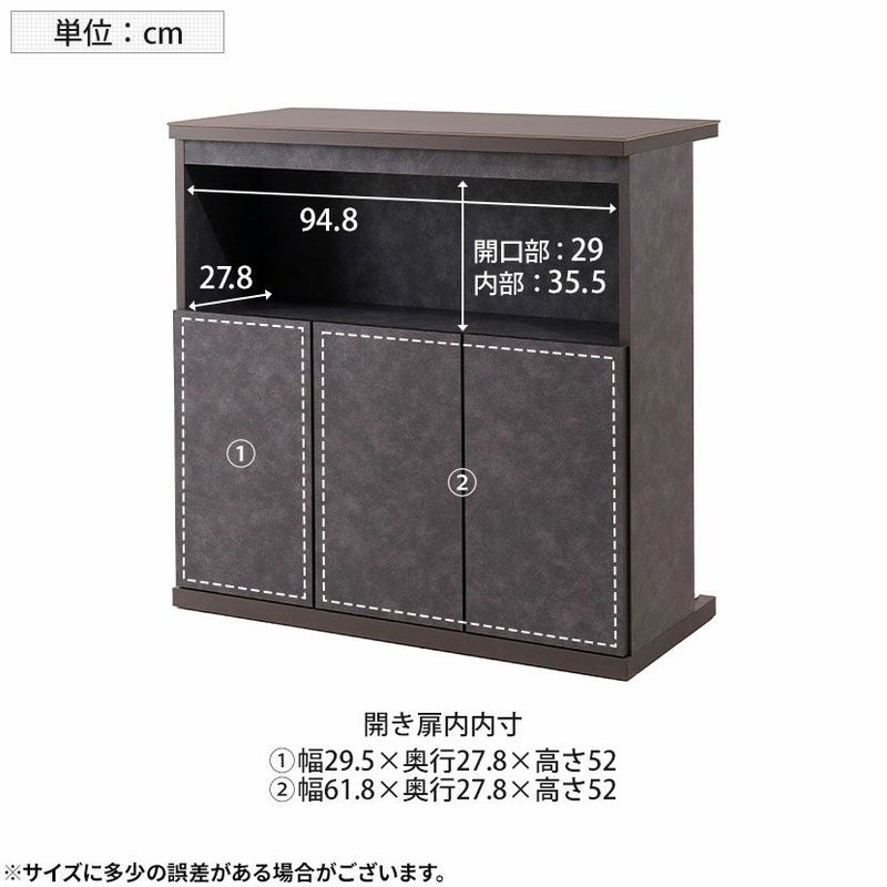 下段の棚は開き扉付きの収納スペースです。