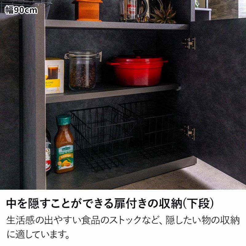 物の出し入れがしやすいオープン収納、中を隠すことができる扉付き収納、便利な可動棚など、収納する物に合わせてお使いいただけます。